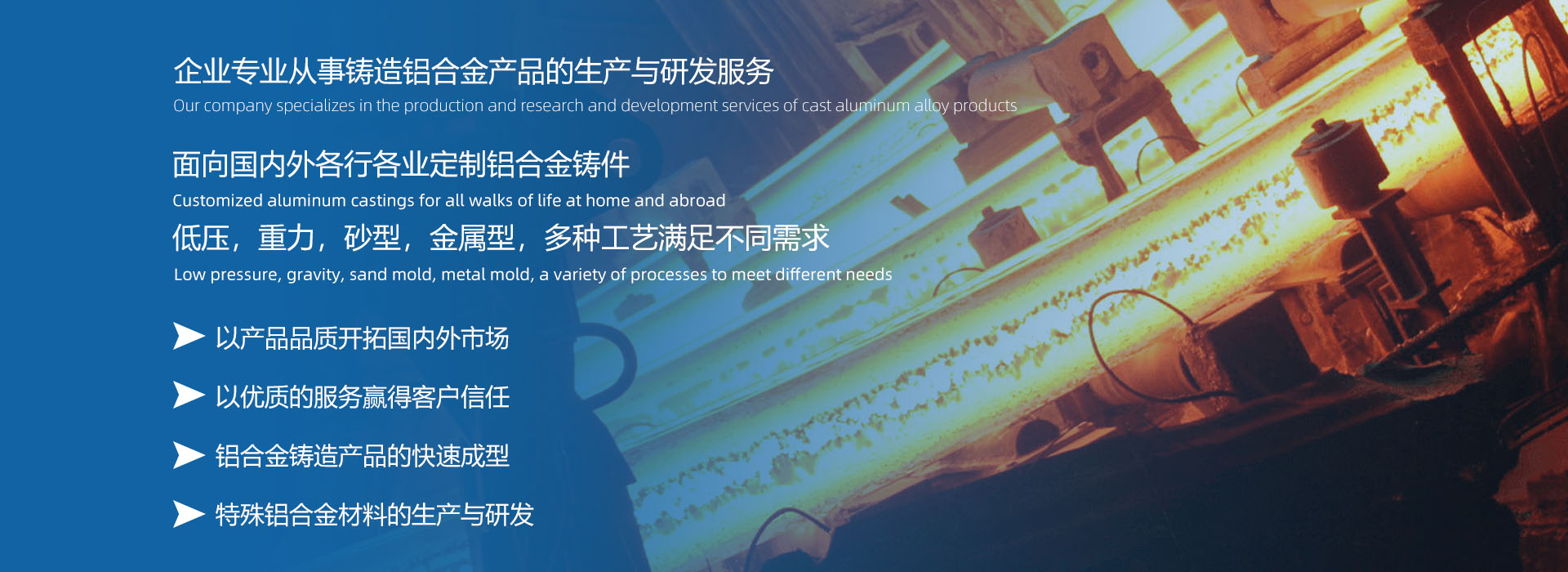 本公司致力于引進(jìn)先進(jìn)的鋁合金新材料和鑄造技術(shù)理念及標(biāo)準(zhǔn),專(zhuān)注于鋁合金鑄造產(chǎn)品開(kāi)發(fā)、生產(chǎn)和服務(wù),緊緊圍繞技術(shù)創(chuàng)新,為客戶(hù)提供滿意的技術(shù)服務(wù)及優(yōu)質(zhì)可靠的產(chǎn)品。堅(jiān)持以鋁合金鑄造加工生產(chǎn)和服務(wù)為主體,建立、實(shí)施并持續(xù)改進(jìn)質(zhì)量管理體系,為增強(qiáng)顧客滿意不懈努力。產(chǎn)品廣泛應(yīng)用于特高壓電氣組件、醫(yī)療器械、藥品包裝機(jī)械、汽車(chē)零部件、空壓機(jī)部件、高速機(jī)床、能源裝備及軍工部件等領(lǐng)域。